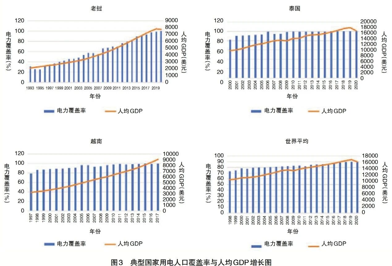 以老撾為例,全球用電人口覆蓋率從80%提升至90%平均耗時約16年,年均增速約為0.76%。而老撾僅用7年便實現(xiàn)這一目標(biāo),年均增速高達4.28%,遠高于越南的1.22%和泰國的0.99%。然而,過早推進無電地區(qū)電力建設(shè),反而對老撾經(jīng)濟造成了嚴(yán)重拖累(見圖3)。