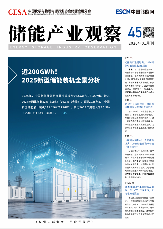 《儲能產(chǎn)業(yè)觀察》2026年01月刊