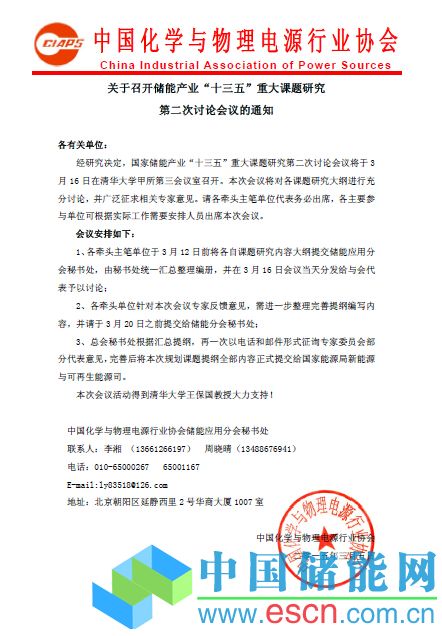 關(guān)于召開儲能產(chǎn)業(yè)“十三五”重大課題研究第二次討論會議的通知