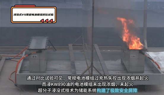 圖注:浸沒式VS常規(guī)電池模組對(duì)比試驗(yàn)