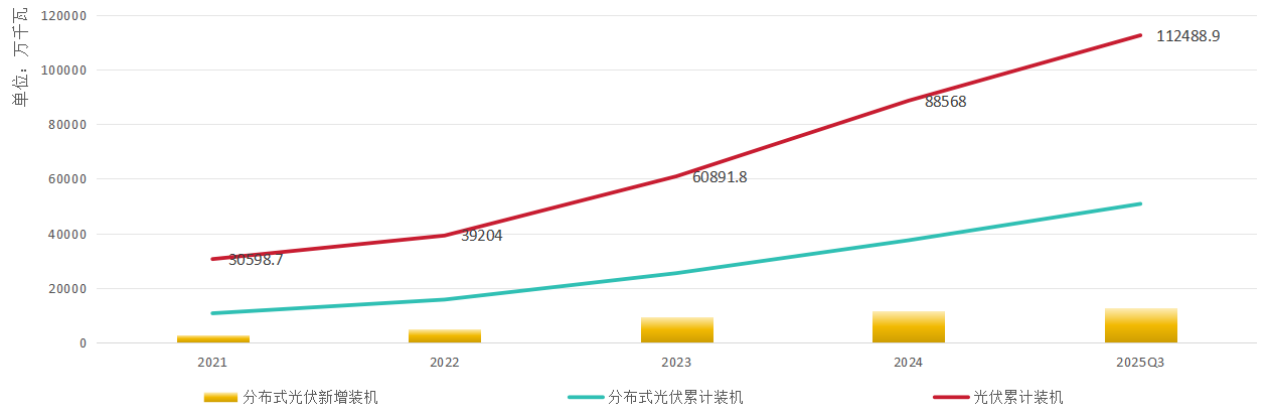 需要明確的是,盡管發(fā)展前景略有“陰霾”,從長期來看,分布式光伏行業(yè)仍是我國新型能源體系建設(shè)的重要組成部分,能夠得到國家政策的持續(xù)支持。2025年9月,我國在聯(lián)合國氣候變化峰會上宣布了新一輪自主貢獻目標,明確提出,到2035年,非化石能源消費占能源消費總量的比重達到30%以上,風(fēng)電和太陽能發(fā)電總裝機容量達到2020年的6倍以上、力爭達到36億千瓦。《中共中央關(guān)于制定國民經(jīng)濟和社會發(fā)展第十五個五年規(guī)劃的建議》中明確表示,積極穩(wěn)妥推進和實現(xiàn)碳達峰,發(fā)展分布式能源,建設(shè)零碳工廠和園區(qū)。