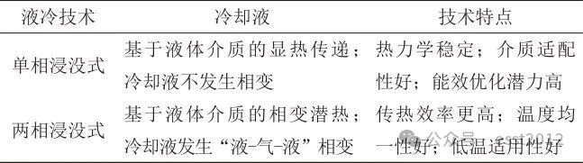 綜上所述,表2中總結了這六類冷卻液的特點及代表性物質。水/乙二醇體系具有成本低、易制備、熱傳導性好、比熱容大和不易燃易爆等優(yōu)勢,但由于電絕緣性差和易變質等特性常作為間接式液冷系統的冷卻劑;油類的成本低、閃點高、耐濕性強、電絕緣性好、耐熱性好、低凝固點、低毒性且抗腐蝕,黏度和密度較大,可作為直接式和浸沒式液冷的冷卻液;納米流體和液態(tài)金屬的導熱性好、熱穩(wěn)定高、可調性強且環(huán)保,但制備成本高,在電池熱管理技術中應用較少;沸騰液體具有自調節(jié)性、高效節(jié)能和高傳熱系數等優(yōu)勢,常用作浸沒式液冷的冷卻液。
