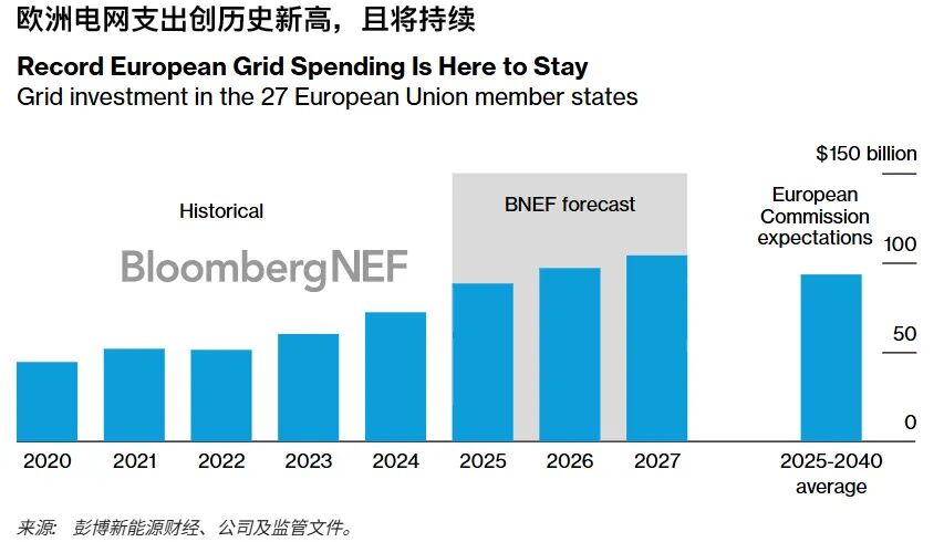據(jù)歐盟委員會數(shù)據(jù),2025-2040年所需的年度電網(wǎng)總投資額