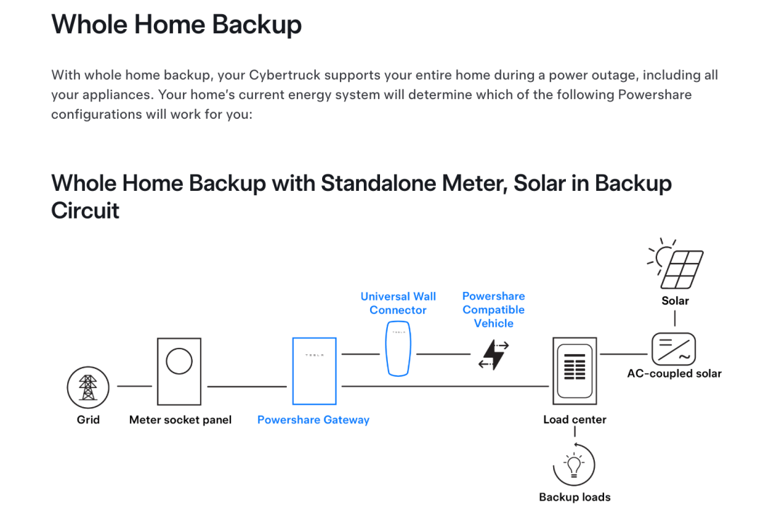 在特斯拉的能源體系里,Powershare是一個完整的家庭供能方案。此前,它的主要功能是為家庭提供應(yīng)急電力——Cybertruck最多可輸出11.5kW。