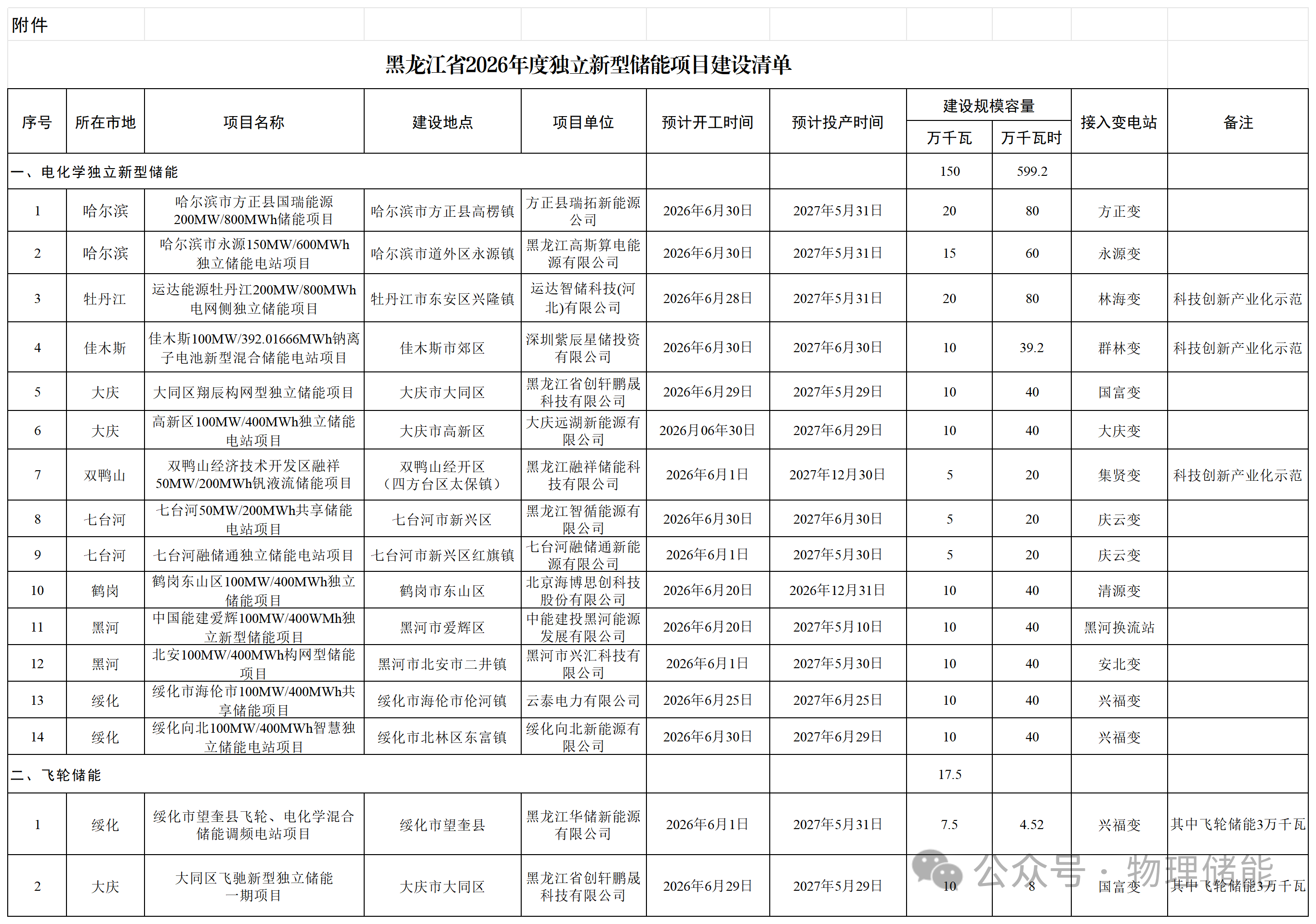 關(guān)于印發(fā)黑龍江省2026年獨(dú)立新型儲(chǔ)能項(xiàng)目建設(shè)清單的通知