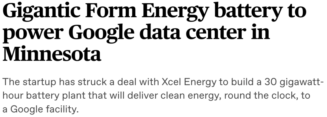 值得注意的是,F(xiàn)orm Energy的首個(gè)商業(yè)項(xiàng)目同樣落地明尼蘇達(dá)州,原計(jì)劃2023年投運(yùn),目前已確定將于2026年完成安裝;此次與谷歌的合作,更是該企業(yè)在首個(gè)商業(yè)項(xiàng)目落地前就獲得的大規(guī)模商業(yè)訂單,印證了其技術(shù)的商業(yè)可行性。