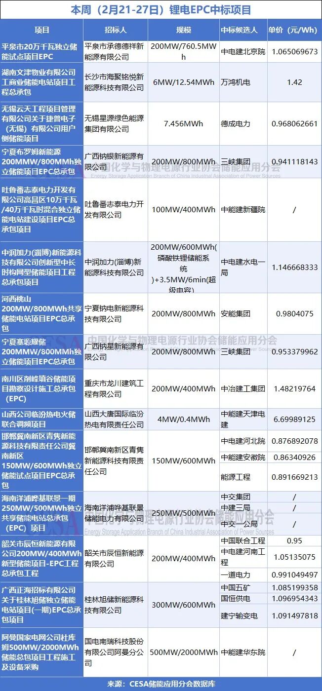 2h鋰電儲(chǔ)能項(xiàng)目EPC最高中標(biāo)價(jià)格1.48元/Wh
