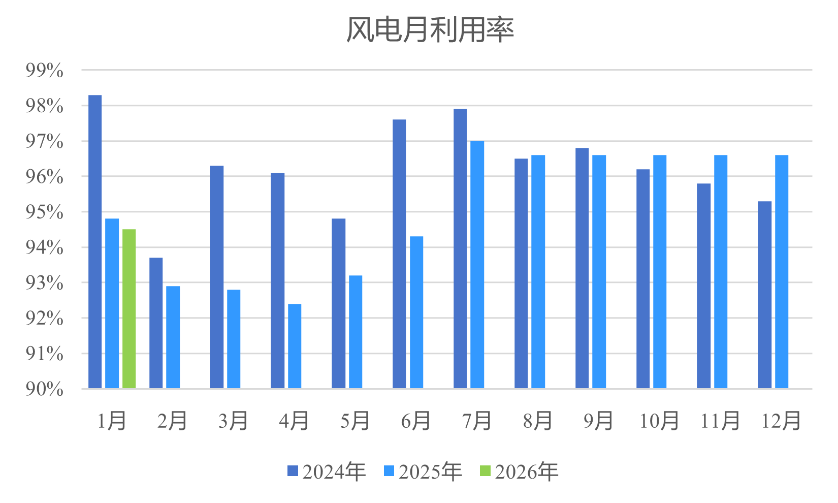 注:按照《國家能源局關(guān)于做好新能源消納工作保障新能源高質(zhì)量發(fā)展的通知》(國能發(fā)電力〔2024〕44號),新能源利用率按僅考慮系統(tǒng)原因受限電量的情況計算。