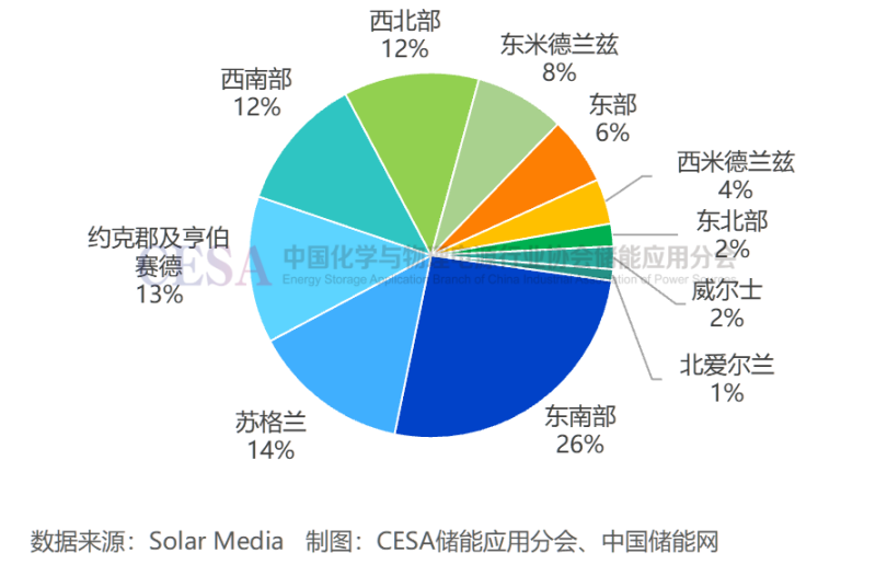圖 截至2025年底英國電池儲能在運項目地區(qū)分布