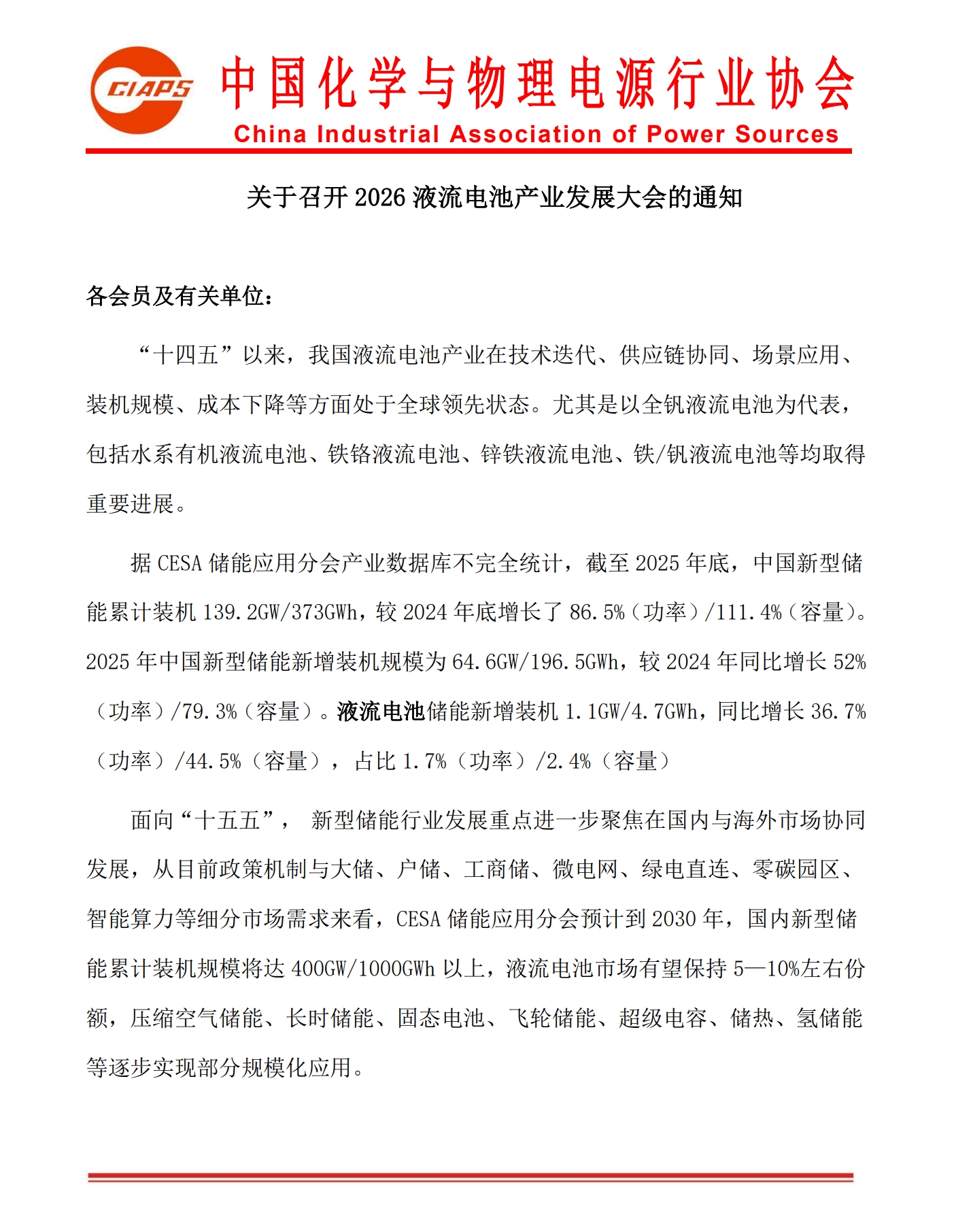 為推動液流電池產(chǎn)業(yè)規(guī)劃加強頂層設(shè)計、提升產(chǎn)品和工程化應(yīng)用創(chuàng)新能力、完善標(biāo)準(zhǔn)建設(shè)、引領(lǐng)和規(guī)范行業(yè)可持續(xù)發(fā)展、推進(jìn)數(shù)字化智能化深度融合,深化區(qū)域協(xié)同與產(chǎn)業(yè)生態(tài)共建,構(gòu)建液流電池產(chǎn)業(yè)共贏生態(tài)鏈與差異化競爭新格局。中國化學(xué)與物理電源行業(yè)協(xié)會決定于2026年5月28—29日在成都世紀(jì)城新國際會展中心召開CFBC2026液流電池產(chǎn)業(yè)發(fā)展大會(簡稱“CFBC2026液流電池大會”)。??