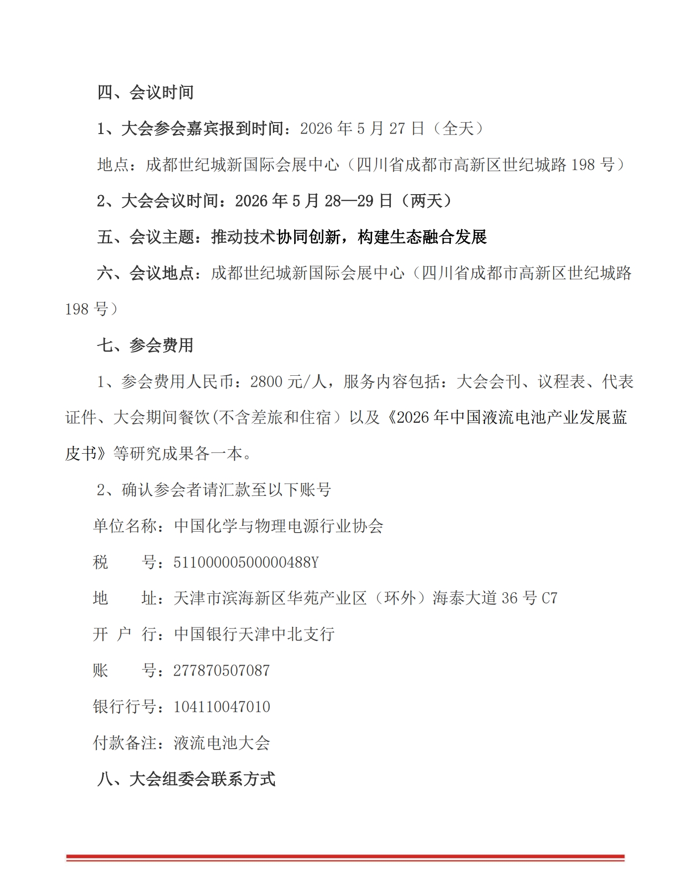1、參會費用人民幣:2800元/人,服務(wù)內(nèi)容包括:大會會刊、議程表、代表證件、大會期間餐飲(不含差旅和住宿)以及《2026年中國液流電池產(chǎn)業(yè)發(fā)展藍(lán)皮書》等研究成果各一本。