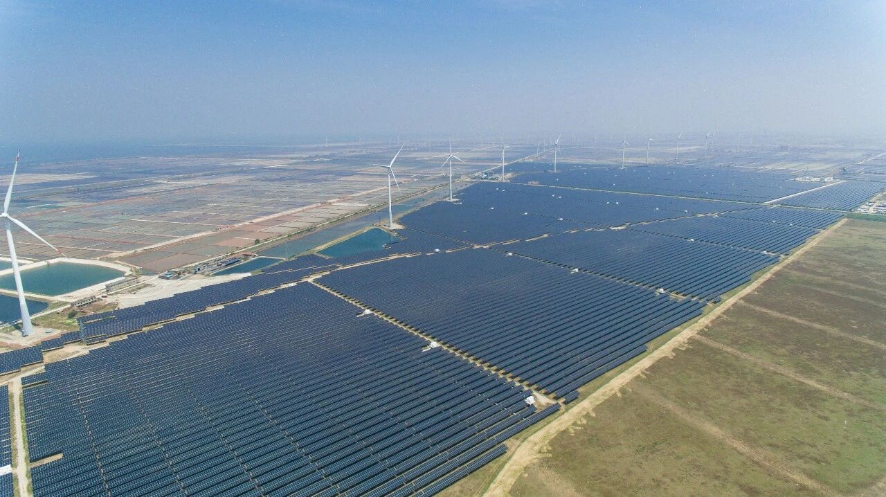 ▲華電萊州大型鹽堿灘涂光儲(chǔ)一體化項(xiàng)目