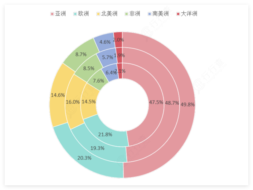 中國變壓器出口全球各區(qū)域市場占比: