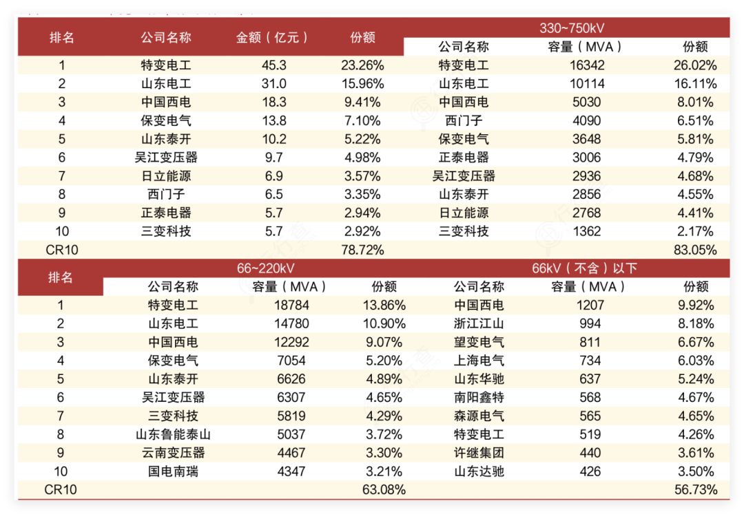 特變電工作為全球變壓器龍頭,覆蓋全系列變壓器產(chǎn)品;中國西電具有央企背景,其超高壓和特高壓技術(shù)領(lǐng)先,是國家重點(diǎn)工程的核心供應(yīng)商;保變電氣在特高壓換流變、核電用變壓器技術(shù)方面具有優(yōu)勢,是電網(wǎng)的核心供應(yīng)商。