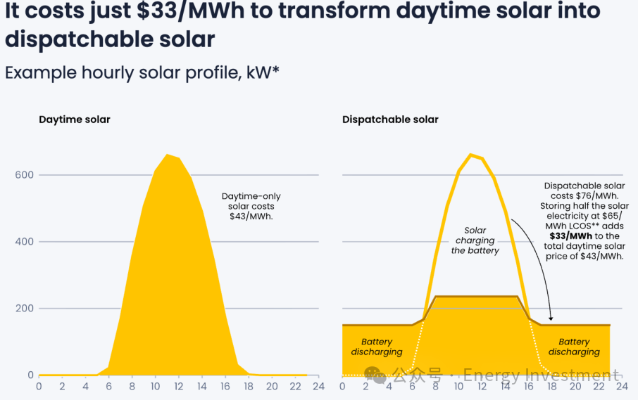 儲能50%日間太陽能發(fā)電用于夜間供電的增量成本僅為$33/MWh