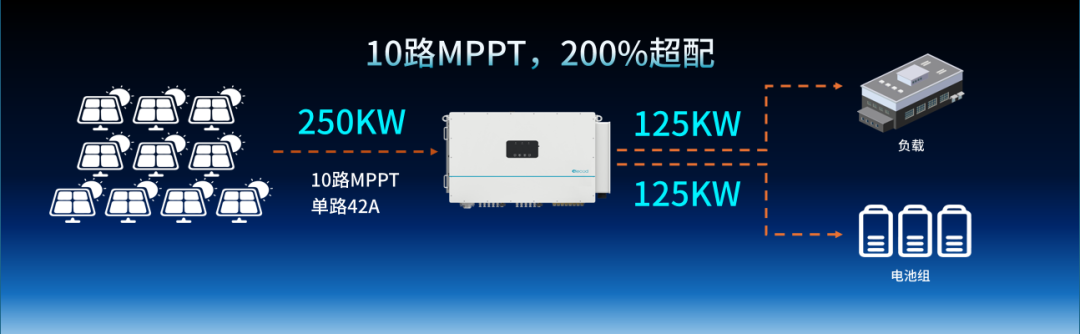 高效、可靠——HMiWay 系列搭載碳化硅半導(dǎo)體技術(shù),并采用英飛凌、安森美兩家一線進(jìn)口品牌器件,做到了極致的輕量化與高收益設(shè)計(jì)。125kW機(jī)型整機(jī)重量?jī)H120kg,大幅降低跨國(guó)運(yùn)輸成本與海外項(xiàng)目現(xiàn)場(chǎng)安裝難度;10路獨(dú)立MPPT實(shí)現(xiàn)對(duì)光伏功率的“顆粒度”管理,200%光伏超配能力,即250kW的光伏輸入可以同時(shí)125kW滿功率充電池以及125kW滿功率帶負(fù)載或上網(wǎng),這不僅能實(shí)現(xiàn)光伏功率的最大化利用,更能在早晚弱光時(shí)段顯著延長(zhǎng)發(fā)電時(shí)間。對(duì)客戶而言,這不僅僅是參數(shù)的提升,而是用同樣的PCS,在復(fù)雜的工商業(yè)環(huán)境下,撬動(dòng)了更高的投資收益比(ROI)。