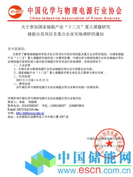 關(guān)于參加國家儲能產(chǎn)業(yè)“十三五”重大課題研究儲能示范項目及重點企業(yè)實地調(diào)研的通知