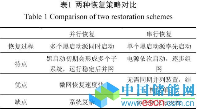 所謂微網(wǎng)黑啟動(Black Start),指在整個微網(wǎng)因外部或內(nèi)部故障停運進入全黑狀態(tài)后,不依靠大電網(wǎng)或其他微網(wǎng)的幫助,僅通過啟動微網(wǎng)內(nèi)部具有黑啟動能力的微源,進而帶動微網(wǎng)內(nèi)無黑啟動能力的微源,逐步擴大系統(tǒng)的恢復范圍,最終實現(xiàn)整個微網(wǎng)的重新啟動。