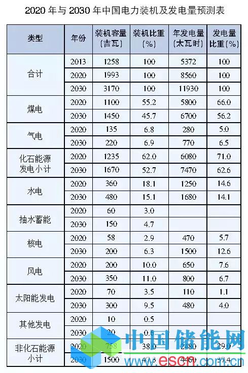 結(jié)合能源革命的要求,經(jīng)過綜合分析,作者提出2020年底及2030年底中國電力裝機結(jié)構(gòu)和發(fā)電量結(jié)構(gòu)的估計,見表。