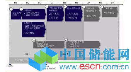該研究共分為三個(gè)階段,分別為各環(huán)節(jié)服務(wù)和技術(shù)的定性、靈活和潛在的儲(chǔ)能需求的定量分析和經(jīng)濟(jì)效益的定性與定量分析。首先是定義各項(xiàng)環(huán)節(jié),收集戰(zhàn)略要素并完成各個(gè)環(huán)節(jié)的建模工作;確定能源愿景,形成概要并執(zhí)行;明確需求與服務(wù)。其次,對(duì)電氣系統(tǒng)、冷/熱網(wǎng)的需求進(jìn)行評(píng)價(jià),并評(píng)估其潛在市場(chǎng)。同時(shí),結(jié)合技術(shù)問(wèn)題,構(gòu)建儲(chǔ)能體系并提供備用解決方案。最后,根據(jù)構(gòu)建的經(jīng)濟(jì)模型分析儲(chǔ)能方案,并分析儲(chǔ)能系統(tǒng)對(duì)整個(gè)工業(yè)的影響。