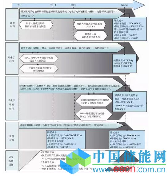 《低碳能源技術(shù)材料路線圖》指出:蓄電是一項(xiàng)重要的技術(shù),可以提高歐洲電力系統(tǒng)的可管理性和靈活性;目前,大多數(shù)儲(chǔ)能技術(shù)過(guò)于昂貴,在系統(tǒng)規(guī)模的廣泛部署和集成方面技術(shù)性能不足;材料往往限制性能提高,而這也是安全和可靠電網(wǎng)中存儲(chǔ)技術(shù)經(jīng)濟(jì)性、有效性和可靠性選擇方面的決定因素;將存儲(chǔ)技術(shù)帶入商業(yè)成熟階段,并加快過(guò)渡到大規(guī)模商業(yè)化是一項(xiàng)優(yōu)先任務(wù)。