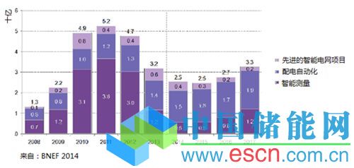 圖2 美國(guó)用于智能電網(wǎng)的支出2008-2017(歷史和預(yù)測(cè))