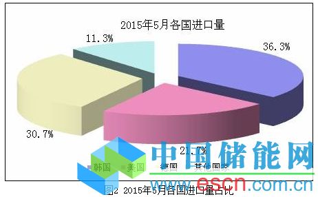 據(jù)5月份分國別進口數(shù)據(jù)顯示,自韓國、美國、德國三國共進口多晶硅9836噸,占總進口量的88.7%,其中從韓國進口量為4027噸,占總進口量的36.3%;從美國進口量為2406噸,占總進口量的21.7%;從德國進口量為3402噸,占總進口量的30.7%;其他地區(qū)進口量為1249噸,占總量的11.3%。