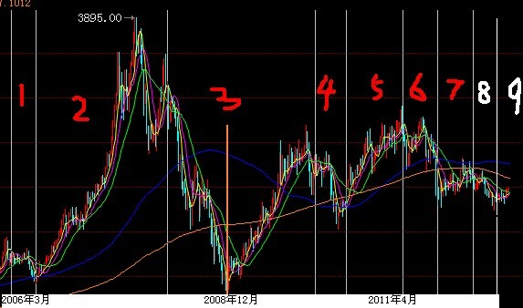 如上圖所示,在過去的十年中,倫鉛價格走勢都呈現(xiàn)出明顯的周期性質(zhì);圖示中,1、4、6 、8四個區(qū)域均是北半球進入夏季,倫鉛均呈現(xiàn)出明顯的下跌走勢;而5、7區(qū)域則顯示北半 球進入冬季,倫鉛則呈現(xiàn)明顯的上漲走勢。