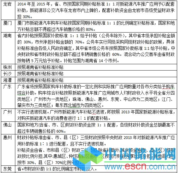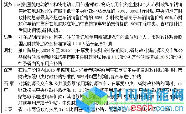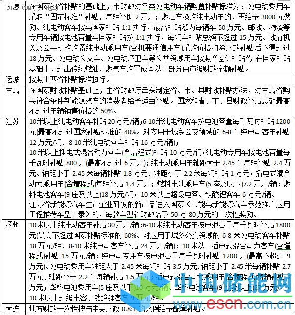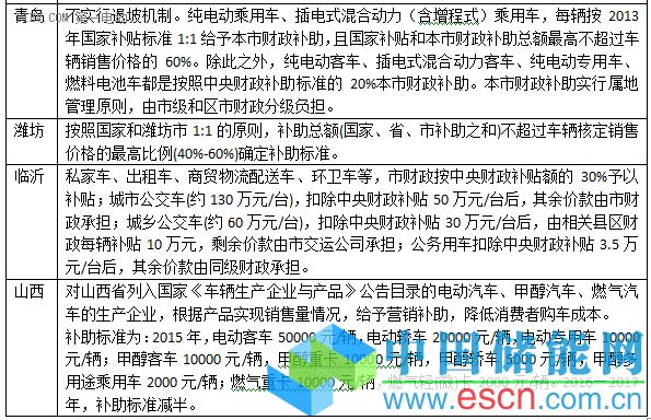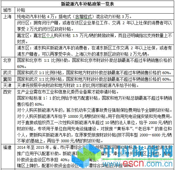 在46個(gè)省市的補(bǔ)貼政策里,按國(guó)家和地方財(cái)政1:1比例補(bǔ)貼的城市分別是:北京、青島、山東、濰坊、武漢、襄陽(yáng)、天津、廣州、惠州、東莞西安、福建、龍巖、廈門、湖南、株洲、長(zhǎng)沙、寧波、深圳、瀘州、贛州等,其中青島、廣州、惠州、深圳四城市實(shí)行不退坡機(jī)制。上海、太原、運(yùn)城、廣東、大連、南昌、蕪湖、昆明等城市按各自不同的補(bǔ)貼方式給予補(bǔ)貼。