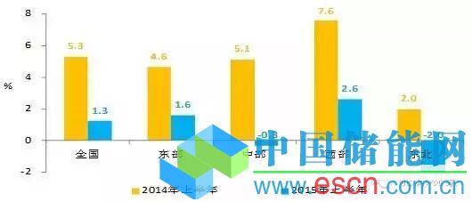 圖32014、2015年上半年各地區(qū)用電量增速情況圖