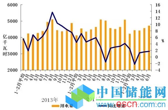 圖1:2013年以來(lái)分月全社會(huì)用電量及其增速