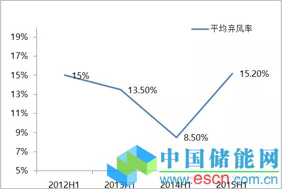 隨著政府出臺一系列政策鼓勵風電并網(wǎng)消納,棄風率最近幾年呈逐步下降趨勢。2012年上半年我國棄風率在15%左右,2013年上半年降至13.5%,而2014年上半年更是進一步降至8.5%,而今年上半年棄風率卻大幅飆回15.2%,創(chuàng)近三年來同期新高,遠遠超過行業(yè)公認的5%的合理區(qū)間。