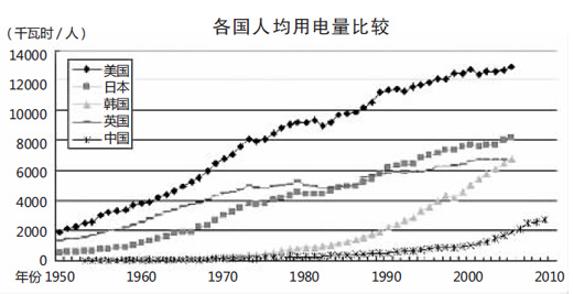 考慮到一方面我國具有后發(fā)優(yōu)勢的特點,另一方面我國幅員遼闊、經濟基礎較差、各地發(fā)展水平參差不齊、重工業(yè)用電比重大等特點,預計在2020年前可達到人均消費5000千瓦時的水平。但是我國人均生活用電量比重提高和第三產業(yè)用電比重提高的任務非常艱巨,如不加快轉變發(fā)展方式,很難實現真正的工業(yè)化。