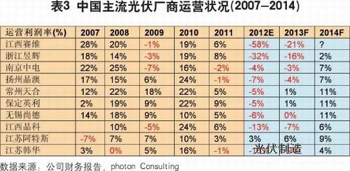 中國絕大多數(shù)多晶硅廠商前景暗淡,那么硅片、電池片、模組等下游廠商的狀況又如何呢?從去年第二、三季度開始,中國主流的光伏廠商的運(yùn)營就已經(jīng)開始出現(xiàn)赤字,而且虧損的嚴(yán)重程度在不斷加劇。更為令人不安地是,這些公司的運(yùn)營狀況有可能要一直等到2014年才能有所改善(表3)。中國公司在經(jīng)歷了2009年的低潮之后,托歐洲市場之福,2010年經(jīng)營狀況大幅改善。但盲目地?cái)U(kuò)大產(chǎn)能、一味追求“高大全”的垂直整合模式迅速導(dǎo)致了全球產(chǎn)能的過剩,這不但在歐美引起了一片抵制中國公司和產(chǎn)品的雜音而且最終還危及了中國公司本身的盈利能力。這大概是再次印證了近20年來制造業(yè)的一個(gè)“中國現(xiàn)象”—不管什么東西,如果中國人能夠大規(guī)模地制造了,結(jié)果很快變得大家都沒錢賺。反過來講,這大概也算是中國對世界的貢獻(xiàn)吧。用一些中國光伏企業(yè)老總自己的話來講,中國人是在(全世界)開拓一個(gè)廉價(jià)的平民光伏時(shí)代。不過我懷疑一旦這個(gè)廉價(jià)光伏時(shí)代真的來了,現(xiàn)在的很多開拓者都將被列入“先烈”的名單了,而未來的市場主宰者將是非常另類的公司。我沒有“水晶球”來透析未來,但目前的市場數(shù)據(jù)表明,中國70-80%的光伏公司在未來2-3年里將難以為繼,大量過剩的產(chǎn)能將被浪費(fèi),以換取利潤的回升,這樣少數(shù)的幸存者才可以在一個(gè)“廉價(jià)光伏時(shí)代”里繼續(xù)偷生。