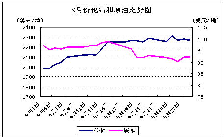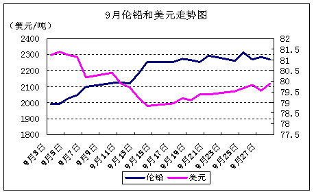 2012年9月份,倫鉛一路上揚(yáng),截至本月收盤較上月上漲306美元,漲幅15.58%,最高觸及2322美元,最低1956美元,本月報(bào)收2270美元,是近一年來(lái)最大的單月漲幅。