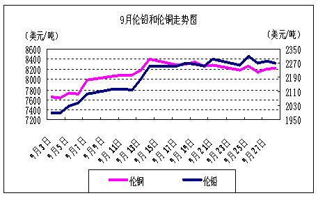 9月份,倫銅總體上以震蕩上行而后高位小幅回落為主,中旬以前受助于量化寬松推動(dòng),節(jié)節(jié)攀升,最高漲幅達(dá)10.3%;不過(guò)下旬以后因其自身基本面不足開始展開高位回調(diào),幅度2.1%,總體上,偏好情緒為主基調(diào)。但是中國(guó)需求不是很樂觀,對(duì)銅價(jià)長(zhǎng)效支撐不夠,因此,高位回落乃勢(shì)在必然。另外,投機(jī)資金高位繼續(xù)撤離銅市,因此對(duì)整個(gè)金屬市場(chǎng)人氣的影響稍微不利。銅價(jià)10月能否維持較強(qiáng)走勢(shì)關(guān)鍵還在于需求前景,另外,中日最近升級(jí)的釣魚島事件或?qū)︺~需求構(gòu)成不利,且需密切關(guān)注10月公布的重要經(jīng)濟(jì)數(shù)據(jù)對(duì)其影響。