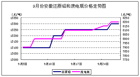 圖8:還原鉛和廢電瓶?jī)r(jià)格走勢(shì)圖