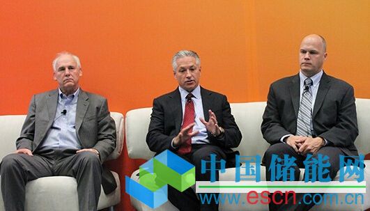 圖:從左至右依次為Dave Ramm(BrightSource董事長(zhǎng)兼首席執(zhí)行官)、Kevin Smith(SolarReserve首席執(zhí)行官)、Fred Redell(Abengoa美國(guó)公司總經(jīng)理)