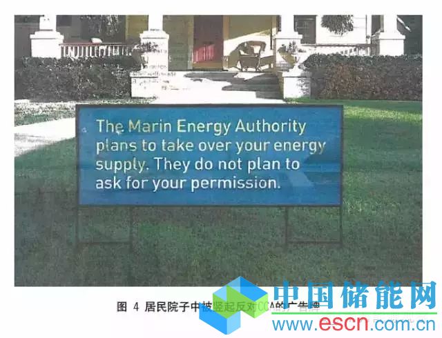公用事業(yè)公司還曾把寫著“你應(yīng)當(dāng)退出CCA(You should Opt Out)”的牌子直接豎到了居民的院子里(如圖4所示),造成民眾一定程度的疑惑和對(duì)CCA的反感。