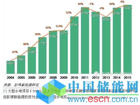 備注:為了反映更多交易信息,我們對歷史年度投資總額進(jìn)行了適當(dāng)修訂。彭博新能源財經(jīng)得到的最新全球清潔能源歷史投資數(shù)據(jù)如下所示:2004年619億美元;2005年880億美元;2006年1283億美元;2007年1749億美元;2008年2056億美元;2009年2073億美元;2010年2737億美元;2011年3183億美元;2012年2970億美元;2013年2719億美元;2014年3159億美元;2015年3289億美元。