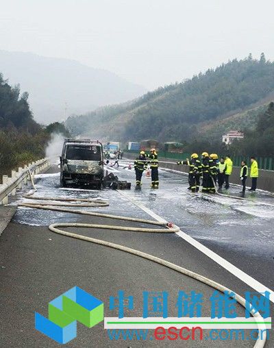 1月19日11時(shí)26分,湖南省郴州市消防支隊(duì)指揮中心接到報(bào)警稱,京港澳高速1780路段往南一裝有鋰電池的貨車發(fā)生火災(zāi)。郴州特勤中隊(duì)立即出動(dòng)4車和21名官兵趕往現(xiàn)場,半小時(shí)將大火撲滅,事故無人員傷亡。