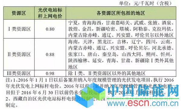 表1:全國光伏電站標(biāo)桿上網(wǎng)電價