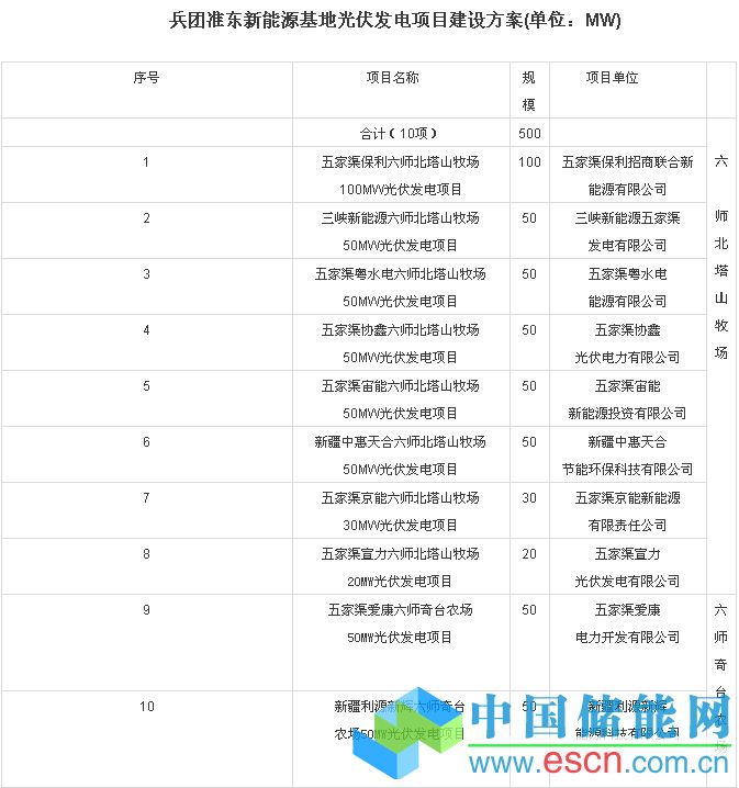 2015年12月25日,新疆建設(shè)兵團(tuán)發(fā)展改革委就兵團(tuán)六師發(fā)改委上報(bào)的準(zhǔn)東新能源基地兵團(tuán)項(xiàng)目實(shí)施方案(師發(fā)改發(fā)[2015]664號(hào))進(jìn)行了批復(fù) ,并強(qiáng)調(diào)嚴(yán)禁倒賣項(xiàng)目現(xiàn)象的發(fā)生。準(zhǔn)東新能源基地規(guī)劃外送項(xiàng)目中歸屬于兵團(tuán)的項(xiàng)目為1.7GW(1700MW),其中風(fēng)電規(guī)模為1.2GW,光伏規(guī)模為500MW。