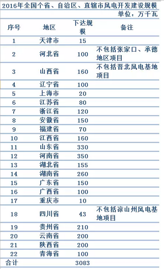 日前,國(guó)家能源局印發(fā)《國(guó)家能源局關(guān)于下達(dá)2016年全國(guó)風(fēng)電開(kāi)發(fā)建設(shè)方案的通知》(以下稱《通知》),《通知》顯示,2016年全國(guó)風(fēng)電開(kāi)發(fā)建設(shè)總規(guī)模將達(dá)到3083萬(wàn)千瓦,由于棄風(fēng)問(wèn)題嚴(yán)重,吉林、黑龍江、內(nèi)蒙古、甘肅、寧夏、新疆(含兵團(tuán))等省區(qū)并未安排開(kāi)發(fā)建設(shè)項(xiàng)目。