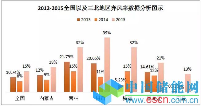 2015年,我國(guó)風(fēng)電總體棄風(fēng)形勢(shì)嚴(yán)峻,而我國(guó)三北地區(qū)的棄風(fēng)問(wèn)題,似乎更是到了刻不容緩的地步。根據(jù)國(guó)家能源局發(fā)布的《2015年風(fēng)電產(chǎn)業(yè)發(fā)展情況》顯示,2015年,我國(guó)風(fēng)電棄風(fēng)限電形勢(shì)加劇,全年棄風(fēng)電量339億千瓦時(shí),同比增加213億千瓦時(shí),平均棄風(fēng)率15%,同比增加7個(gè)百分點(diǎn),其中棄風(fēng)較重的地區(qū)是內(nèi)蒙古棄風(fēng)電量91億千瓦時(shí)、棄風(fēng)率18%;甘肅棄風(fēng)電量82億千瓦時(shí)、棄風(fēng)率39%;新疆棄風(fēng)電量71億千瓦時(shí)、棄風(fēng)率32%;吉林棄風(fēng)電量27億千瓦時(shí)、棄風(fēng)率32%。