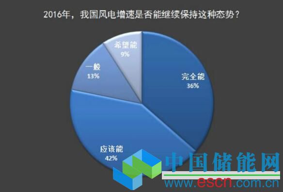 展望“十三五”,我國風電增速是否能繼續(xù)保持這種態(tài)勢?調查數據顯示,36%的受訪人群認為完全能,42%認為應該能做到,一般13%,希望9%。(如下圖所示)