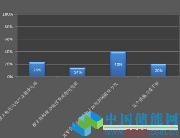 頂層設計不斷加碼,這將對風電產業(yè)發(fā)展帶來怎樣的影響?中國電力新聞網、中電傳媒微博微信論壇、中電傳媒電力數據調查中心日前通過微話題征集活動,發(fā)布調查問卷,廣泛征集意見。調查結果顯示,認為在此基礎上還要有更多措施加大治理棄風限電力度的人群占比達到40%,認為這將極大促進風電產業(yè)健康發(fā)的人群占比23%,認為將根本扭轉部分地區(qū)棄風限電局面的人群占比14%,還有20%的人群認為這個措施力度不夠,大家對風電發(fā)展和解決棄風限電充滿了期待。(結果如下圖所示)