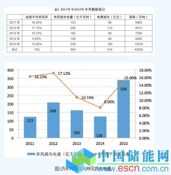 從統(tǒng)計來看,2011年至2015年我國棄風電量累計損失達到959億千瓦時(三峽、葛洲壩兩座水電站在2015年的發(fā)電量一共是1048億千瓦時,2014年江西省一年的全社會用電量是1018億千瓦時)。近五年平均棄風率達到13.4%,電費損失累計約518億元。相當于燒掉原煤4億多噸,僅2015年燒掉原煤1.5億噸。