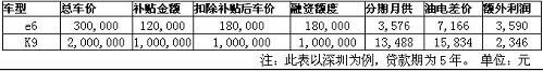 同時(shí)比亞迪的新方案,改一次付款為分期月供,合約期內(nèi)每月油電差價(jià)的節(jié)省金額高于月供。即使是零首付全額月供,油電差價(jià)也足以覆蓋月供金額,大大減輕了購(gòu)車方的月供壓力。以深圳為例,每臺(tái)e6出租車實(shí)際售價(jià)約18萬(wàn)元(減除國(guó)家及地方補(bǔ)貼共12萬(wàn)元),零首付五年期全額貸款,月供3576元,而每月的油電差價(jià)為7166元。相當(dāng)于客戶每月僅需用節(jié)省下來(lái)的油電差價(jià)的50%來(lái)支付月供。并且行駛里程越高節(jié)省金額越多。