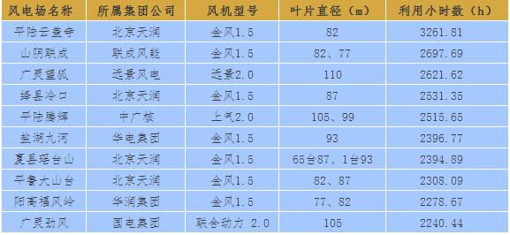 排名第一的天潤平陸云蓋寺風(fēng)電場于2013年7月投入運(yùn)行,裝機(jī)容量49.5MW,使用的是金風(fēng)1.5MW機(jī)組,葉片直徑82米,2015年利用小時(shí)數(shù)達(dá)到了3261.8,而山西省2015年火電平均利用小時(shí)數(shù)也只有4100小時(shí)。